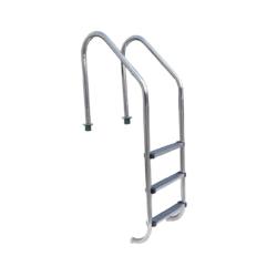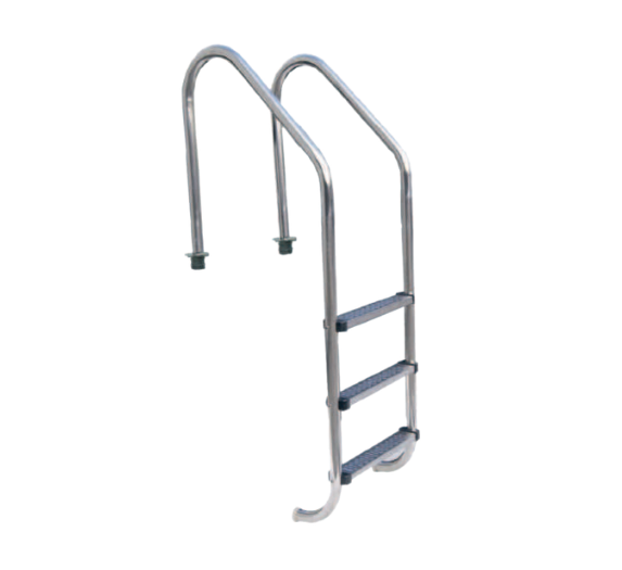 Ø43 mm paslanmaz çelik borudan üretilmiş, kaymaz basamaklı ve 51 cm genişliğe sahip 3 basamaklı standart havuz merdivenidir. Rozetleri ve montaj parçalarıyla birlikte güvenli, dayanıklı ve uzun ömürlü kullanım sağlar.
