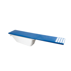 Polyester ve fiberglastan üretilmiş, açık mavi renkli ayağı ile birlikte sunulan düz tramplen, dayanıklı yapısı ve şık tasarımıyla havuzlarda güvenli ve keyifli kullanım sağlar.