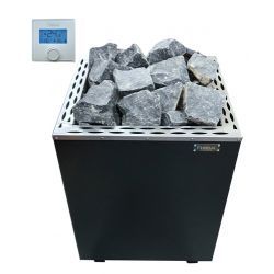 Orta-büyük hacimli 14–24 m³ sauna odaları için tasarlanmış, 40 kg taş kapasitesiyle kararlı ısı ve yoğun buhar performansı sağlayan 15 kW elektrikli bir ısıtıcıdır. Resmî tabloda 380V 3N/PE/50Hz besleme, RCD 4×25 A (30 mA) ve 5×6 mm² kablo (≤10 m, halojensiz) önerilir. Gövde ölçüleri 500×470×700 mm, ağırlık ~26,5 kg’dır. Model harici kontrol paneli ile kullanılır.