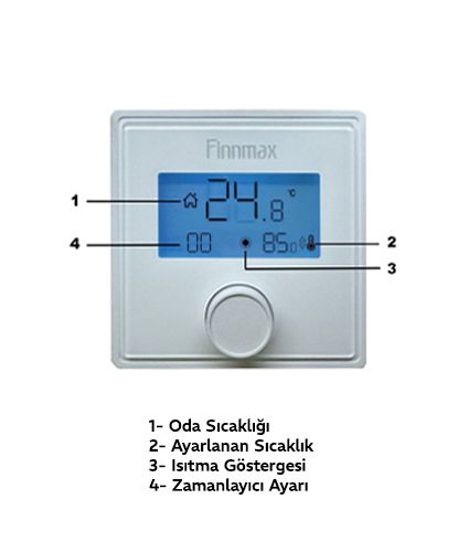 Kontrol paneli açıldığında cihaz manuel moddadır. Ekranda “00” görünür (4 numara). Bu durumda soba, kapatma butonuna basılana kadar açık kalır.