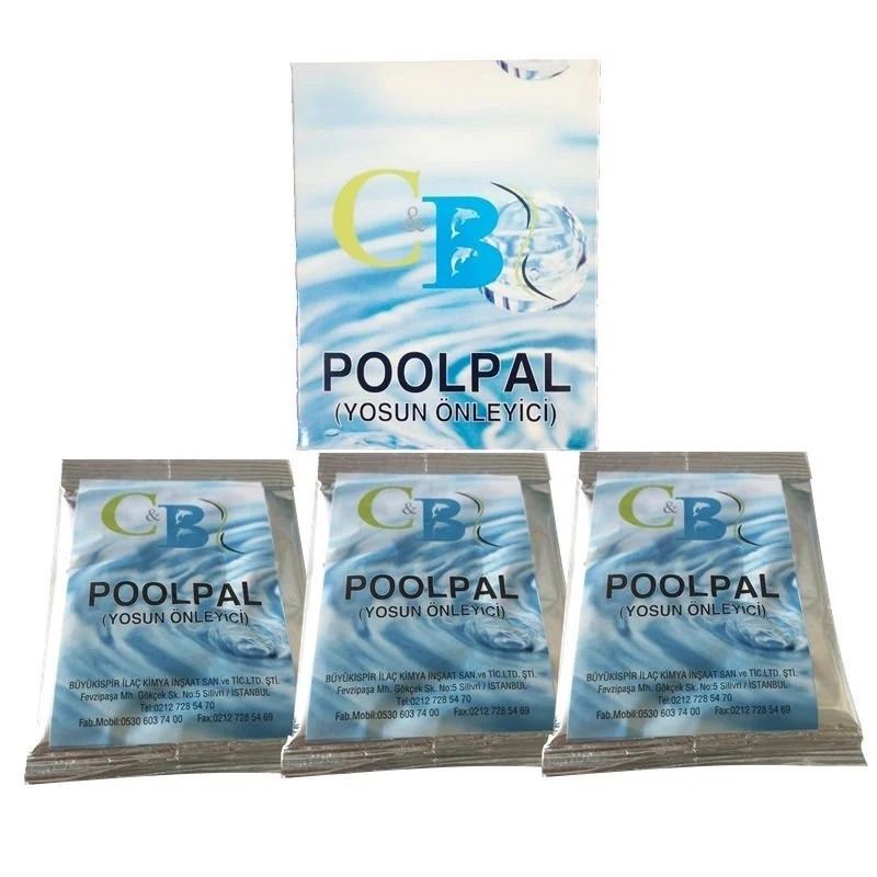 Haftalık bakım için 1 paket C&B Poolpal, 2–3 litre suda çözdürülüp havuz yüzeyinden uygulanır.